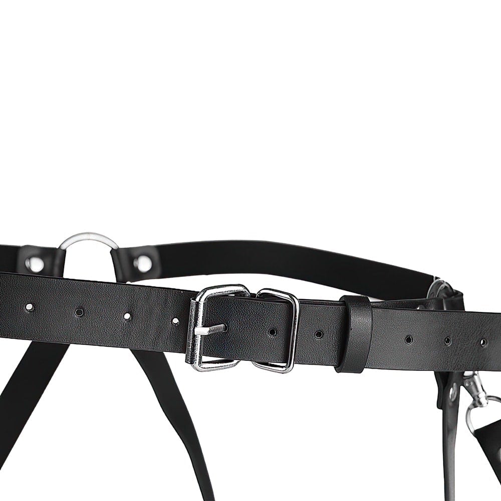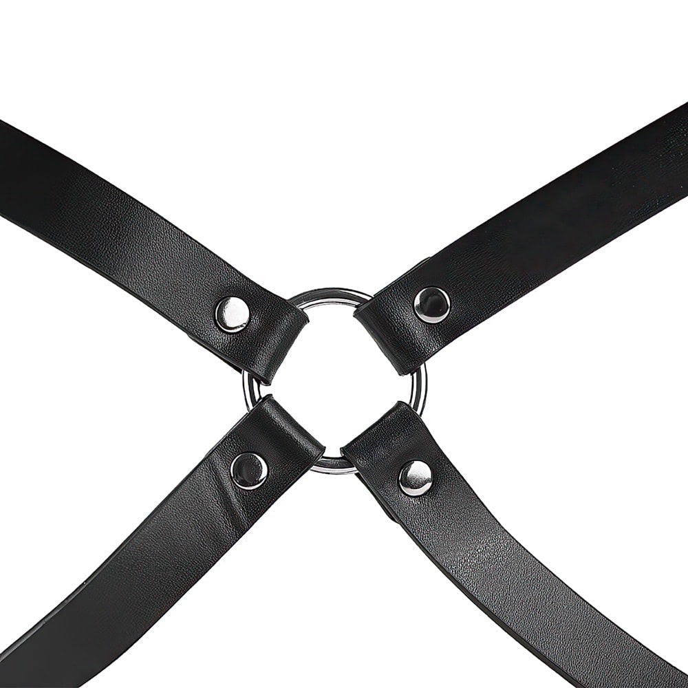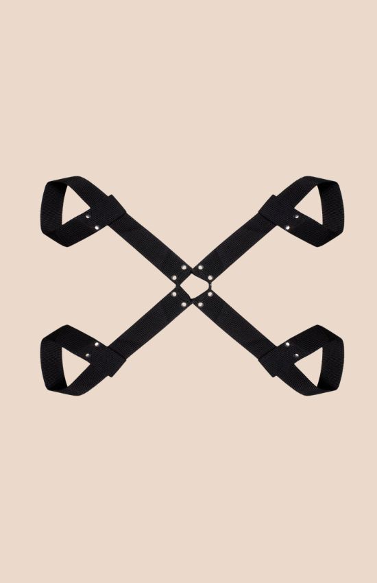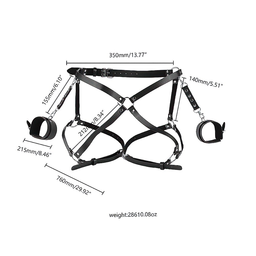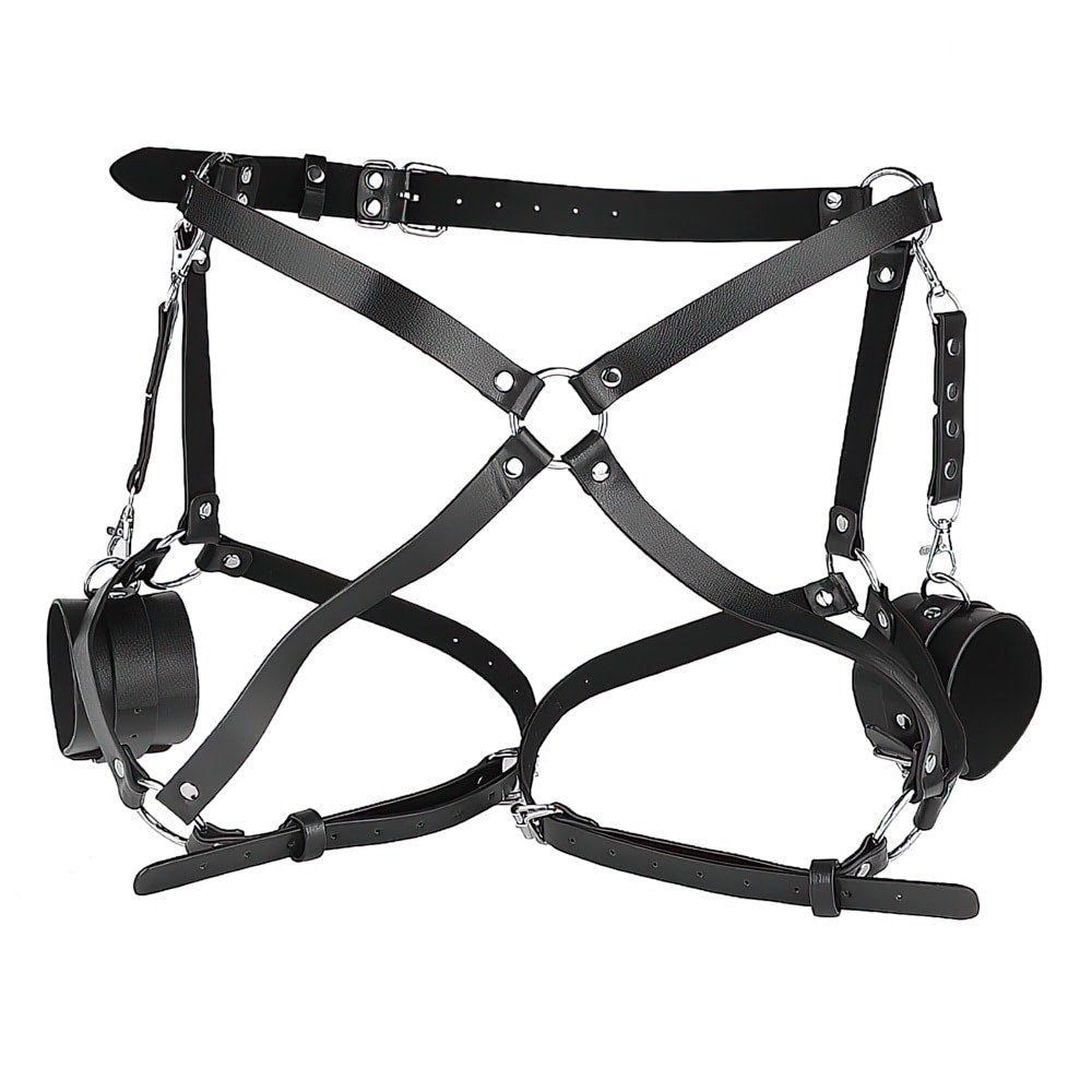 Dispositivo de Restrição em Couro.Este dispositivo de restrição é composto por uma combinação sofisticada de couro e acessórios metálicos, projetado para oferecer funcionalidade e estilo. As tiras de couro são interligadas por fechos metálicos, criando uma estrutura complexa e versátil, ideal para uso em cenários específicos. O design minimalista e a alta qualidade dos materiais garantem durabilidade e segurança durante o uso. Ideal para casais que desejam explorar novas formas de conexão e brincadeiras eróticas, este dispositivo combina funcionalidade e estilo em um design marcante e versátil.